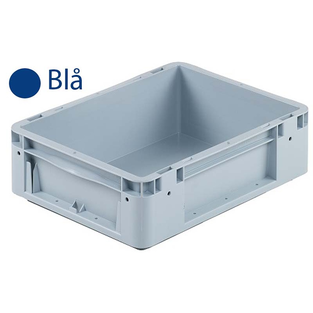 En formstabil och robust back tillverkad i polypropen som tål de flesta typer av olja, syra och lut, klarar temperaturer från -30° till +70°. I nnerväggarna är släta för enkel rengöring. Den runtomgående starka staplingskanten och en stadiga botten garanterar hög staplingssäkerhet samt ljuddämpande och bra gång på t ex rullbanor.